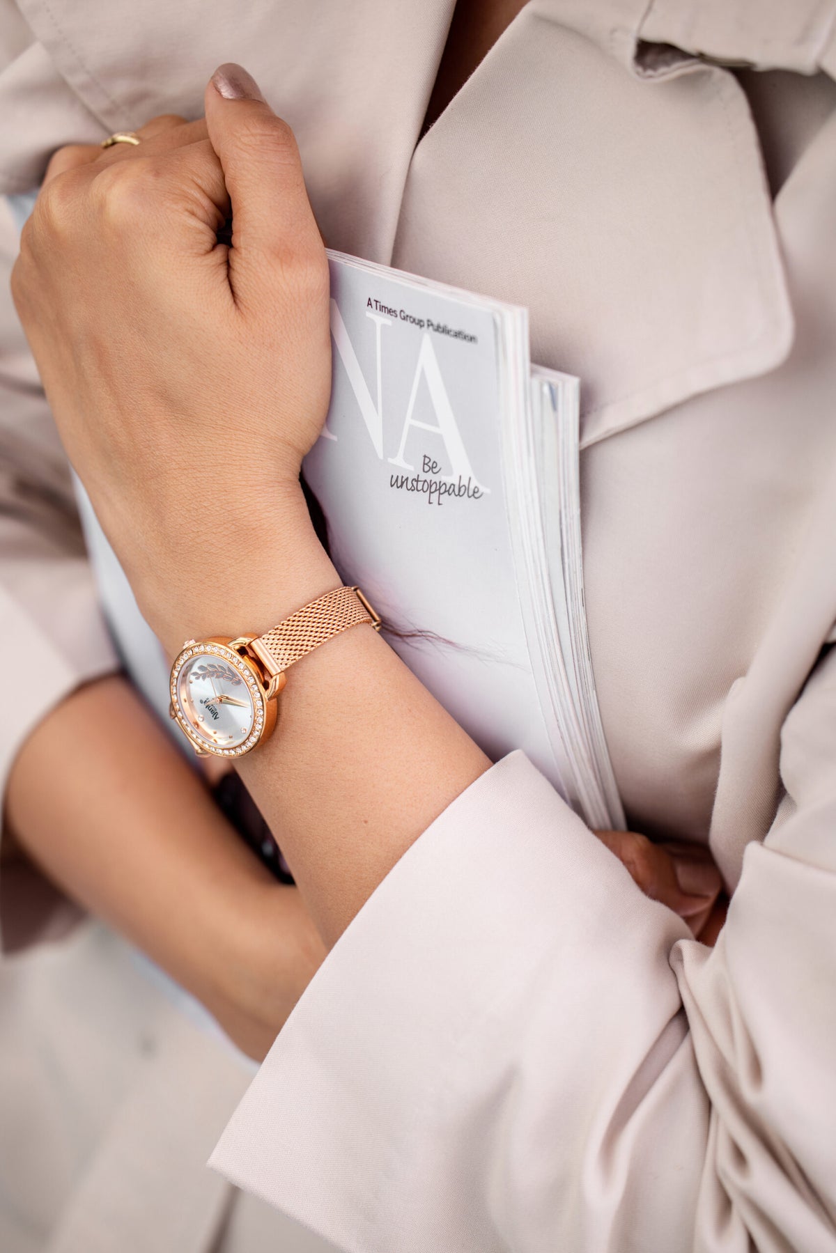 The Radiane Noor Collection - AWC203-3 is a sleek 30mm women’s watch featuring a bold black dial and complemented by...