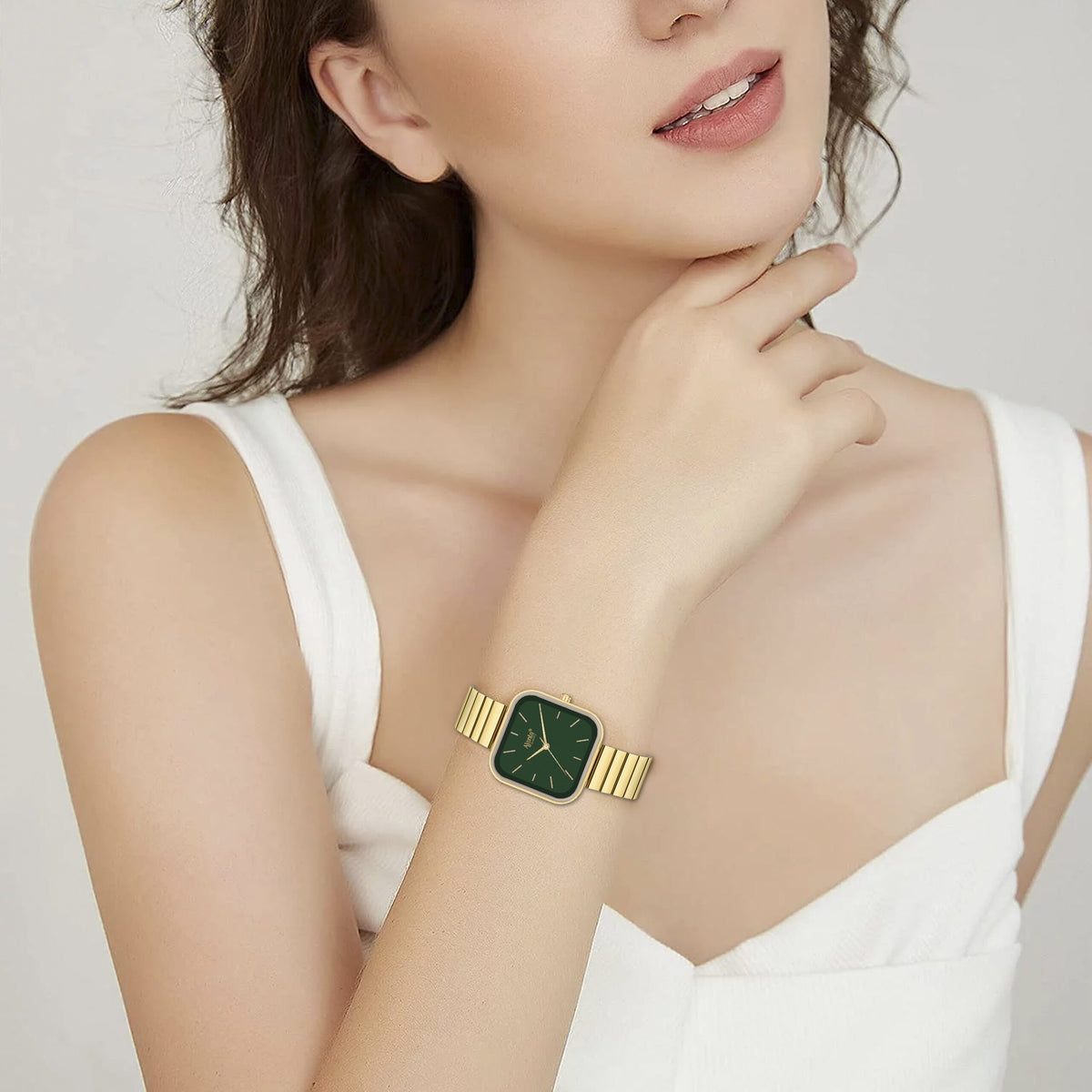 Elevate your style with the Ajanta Quartz Analog Watch, a perfect blend of elegance and sophistication. Featuring a striking emerald green square dial encased in a premium gold-toned stainless steel strap, this timepiece is designed for those who appreciate timeless fashion. The minimalist stick markers and sleek hands add a modern touch, making it equally suitable for formal and casual occasions. Lightweight, durable, and versatile, this watch ensures all-day comfort while maintaining precise timekeeping with reliable quartz movement. Its contemporary design complements a wide range of outfits—whether you’re heading to the office, attending social gatherings, or enjoying a casual day out. Blending style, practicality, and everyday elegance, the Ajanta Quartz Analog Watch is more than just a timepiece; it’s a statement accessory that enhances your look and reflects your impeccable taste wherever you go.