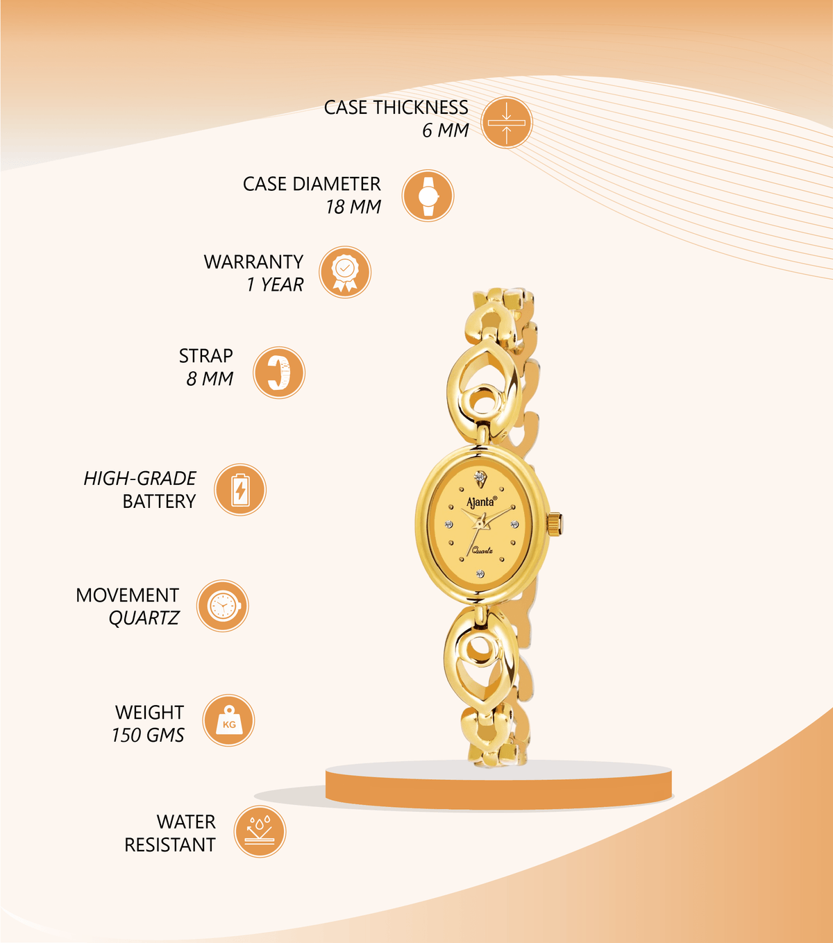 Ajanta Gold Women’s Watch – Oval Dial | AWC411MRL/3