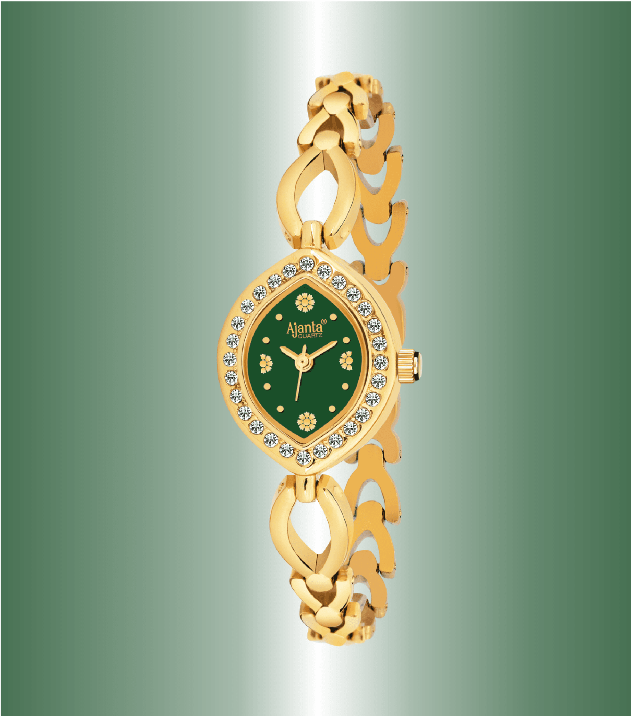 Ajanta Analog Golden Bracelet Watch for Women(Green – Golden) AWC415-3.