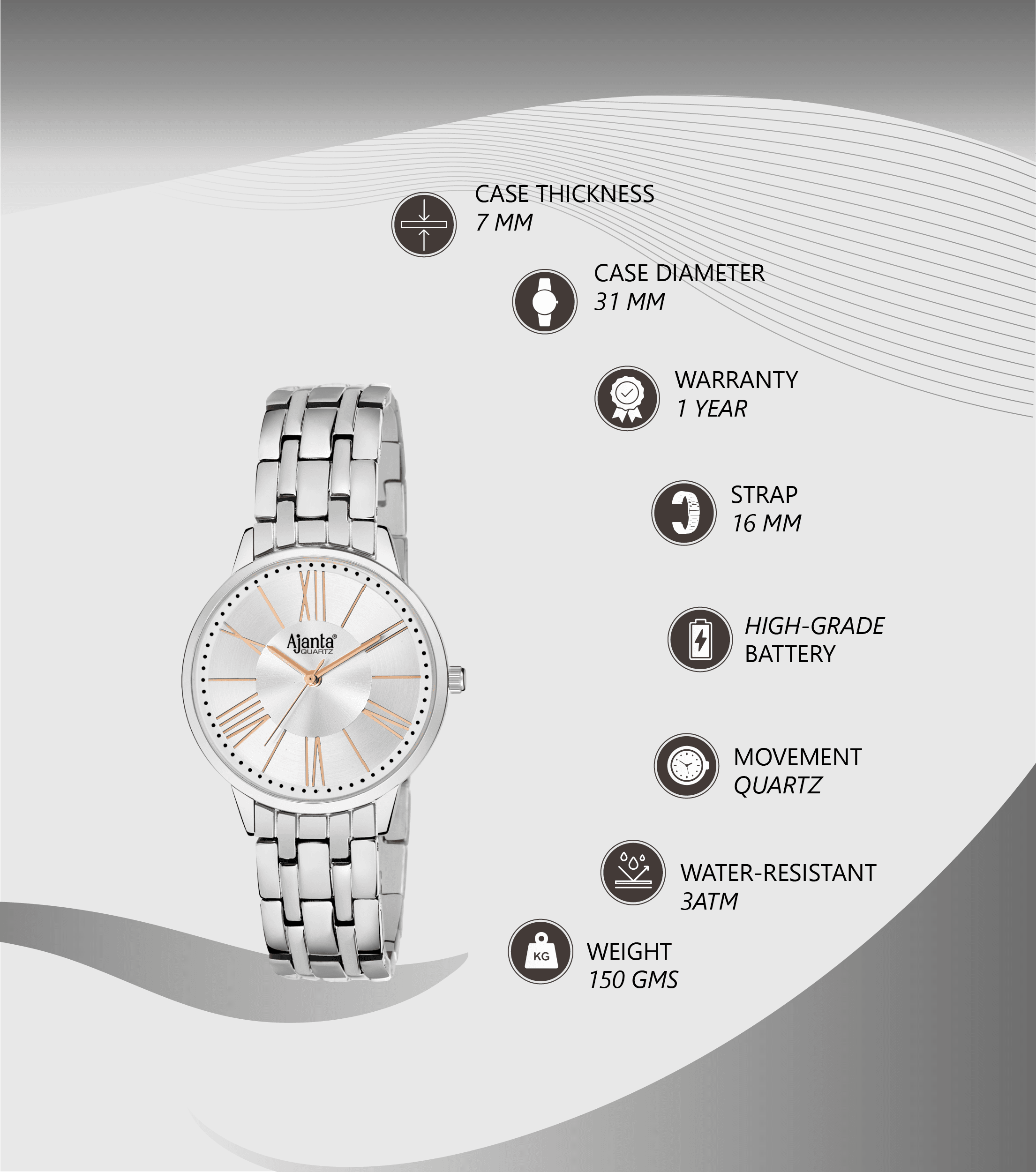 Ajanta’s Quartz Exclusive Analog Wrist Watches for Women(Silver – Silver) AWC116-1.