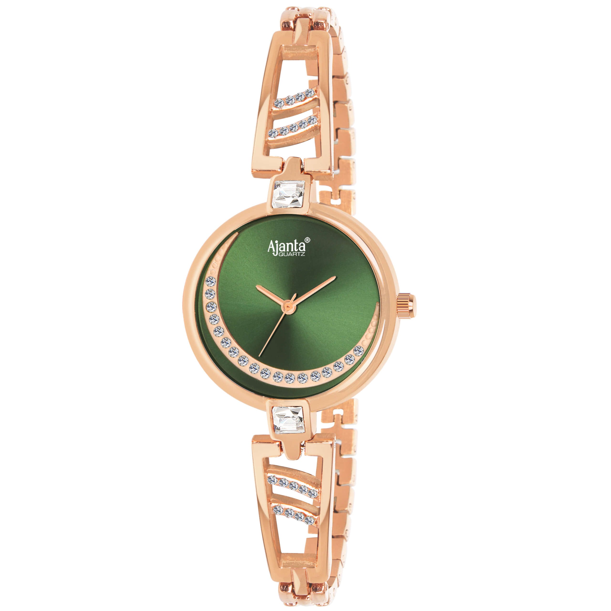Ajanta’s Quartz Exclusive Analog Wrist Watches for Women(Green – Rosegold) AWC121-3.