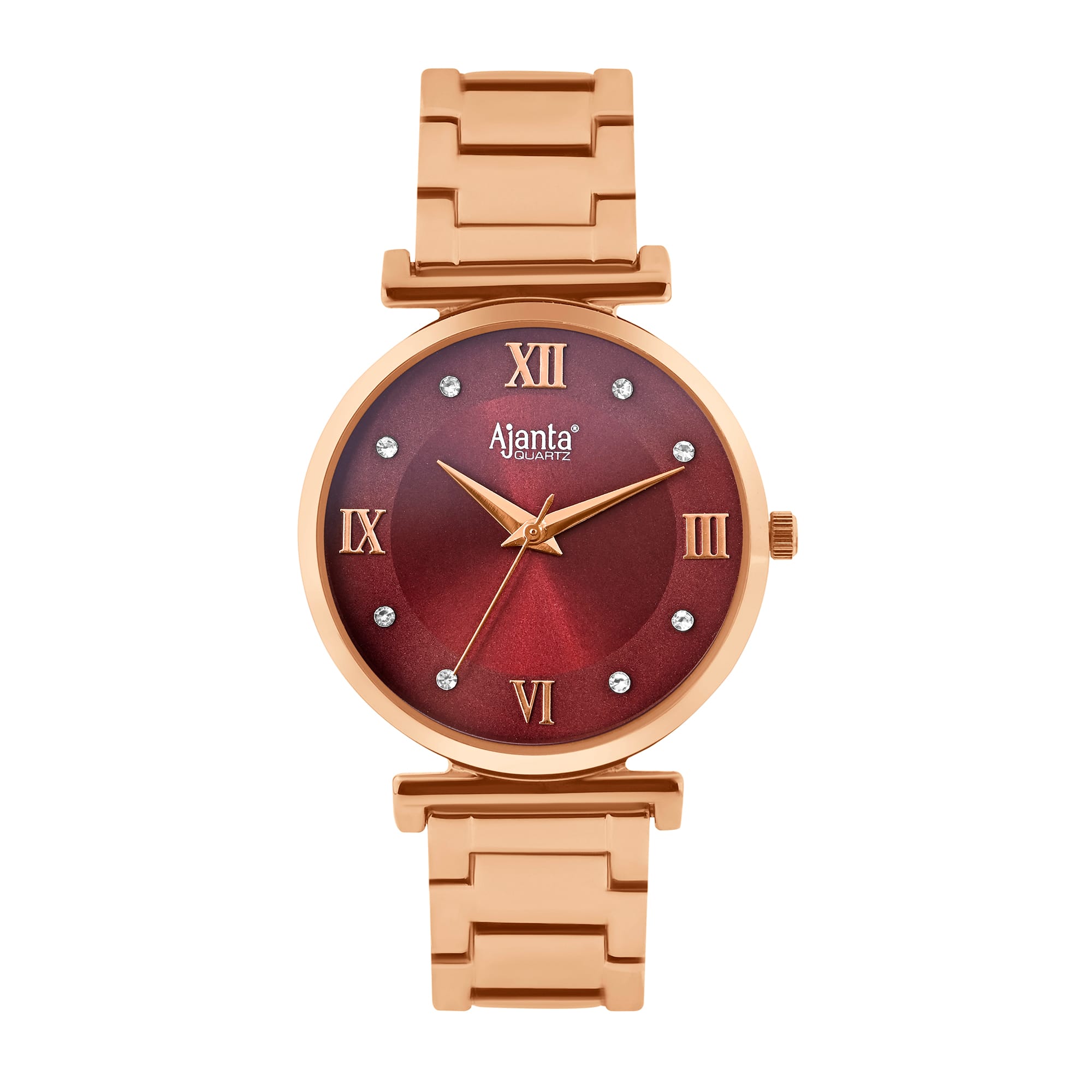 Ajanta’s Quartz Exclusive Analog Wrist Watches for Women(Maroon – Rosegold) AWC119-7