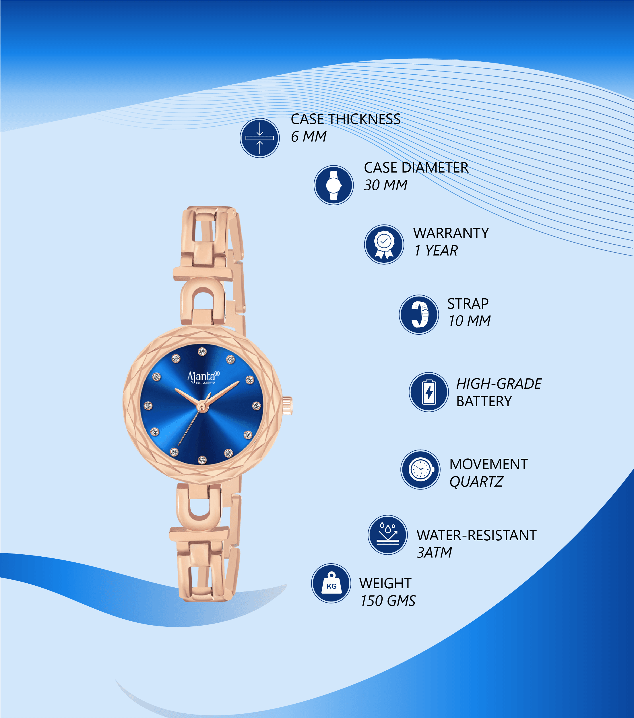 Ajanta’s Quartz Exclusive Analog Wrist Watches for Women(RoseGold – Blue) AWC130ESL/1