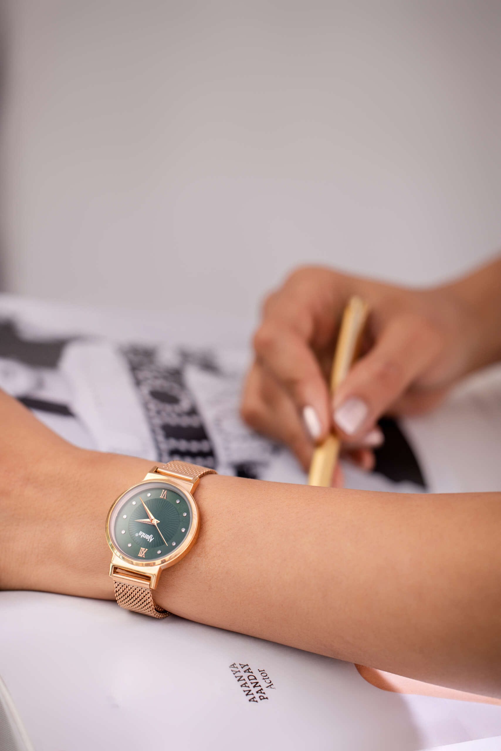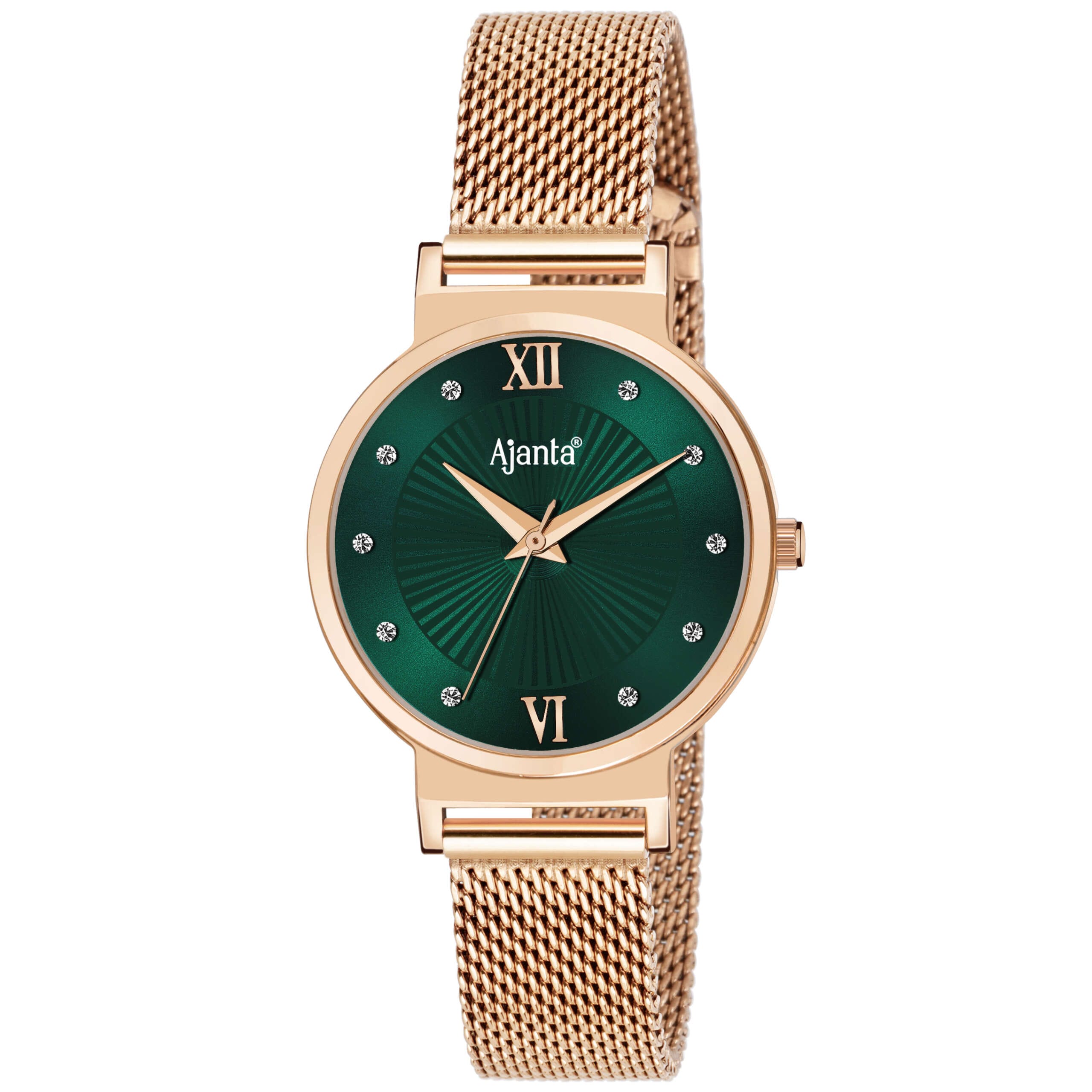 Ajanta’s Quartz Silver Analog Wrist Watches for Women(Green – Rosegold) AWC117-5.
