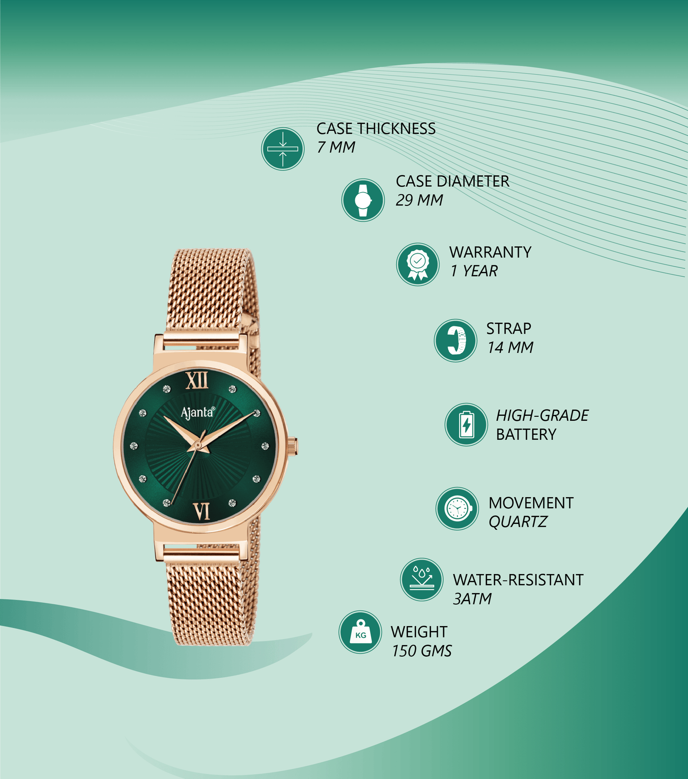 Ajanta Women’s Green Dial Stainless Steel Strap Watch | AWC117ESL/5